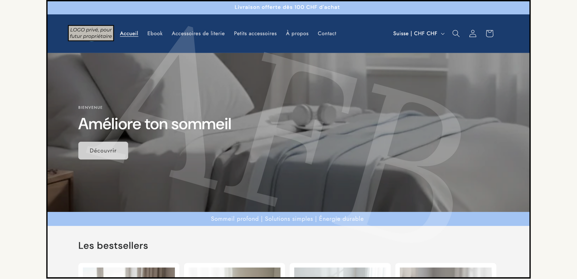 Tu souhaites créer une marque qui améliore le sommeil, la santé et le bien-être grâce à une offre hybride combinant produits physiques et ebook pratique ? Voici une opportunité exceptionnelle : une boutique en ligne spécialisée dans le sommeil, prête à être exploitée, conçue pour séduire une clientèle désireuse de mieux dormir, de réduire la fatigue et de retrouver un équilibre quotidien.