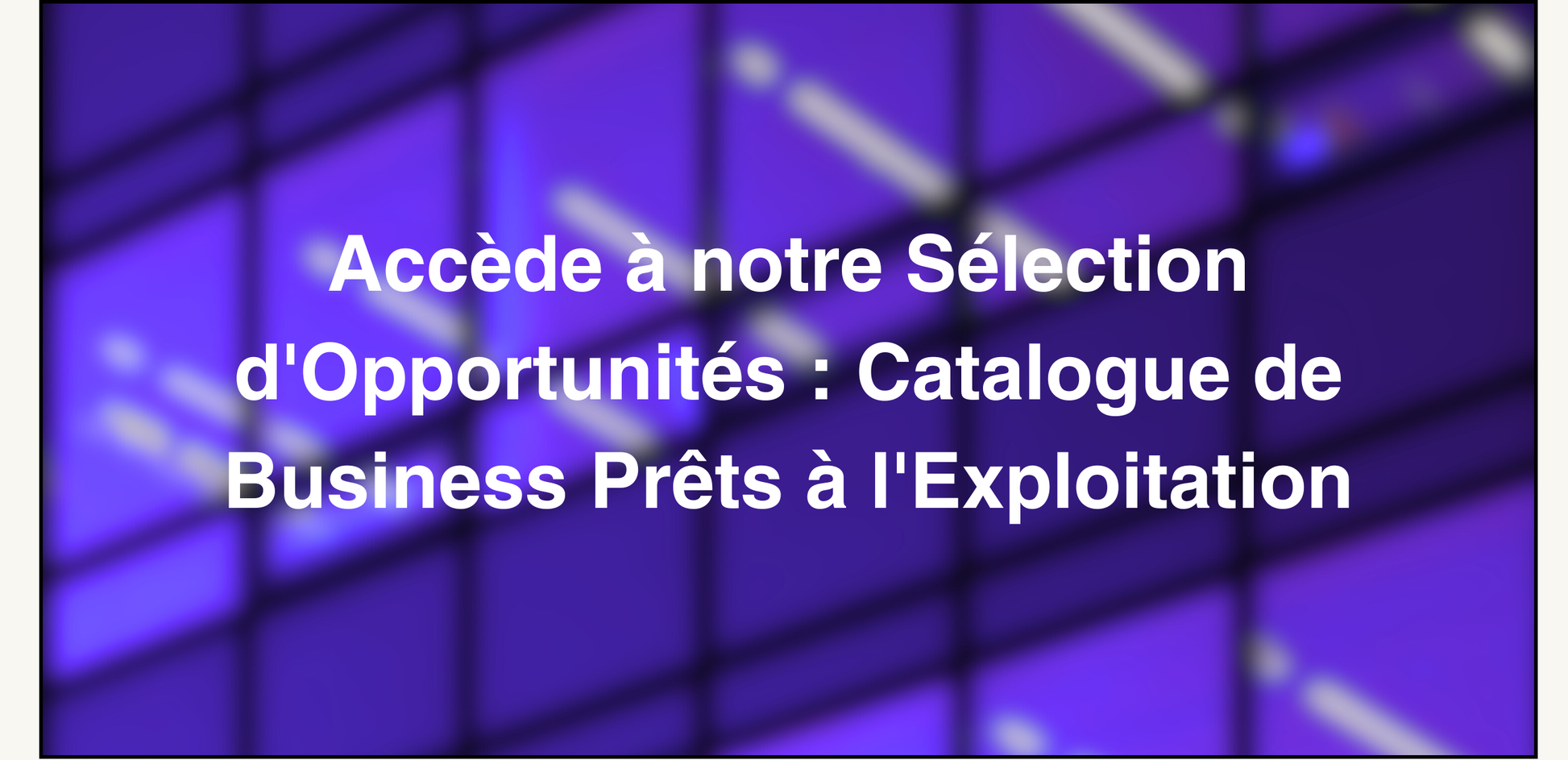Accède à notre Sélection d'Opportunités : Catalogue de Business Prêts à l'Exploitation